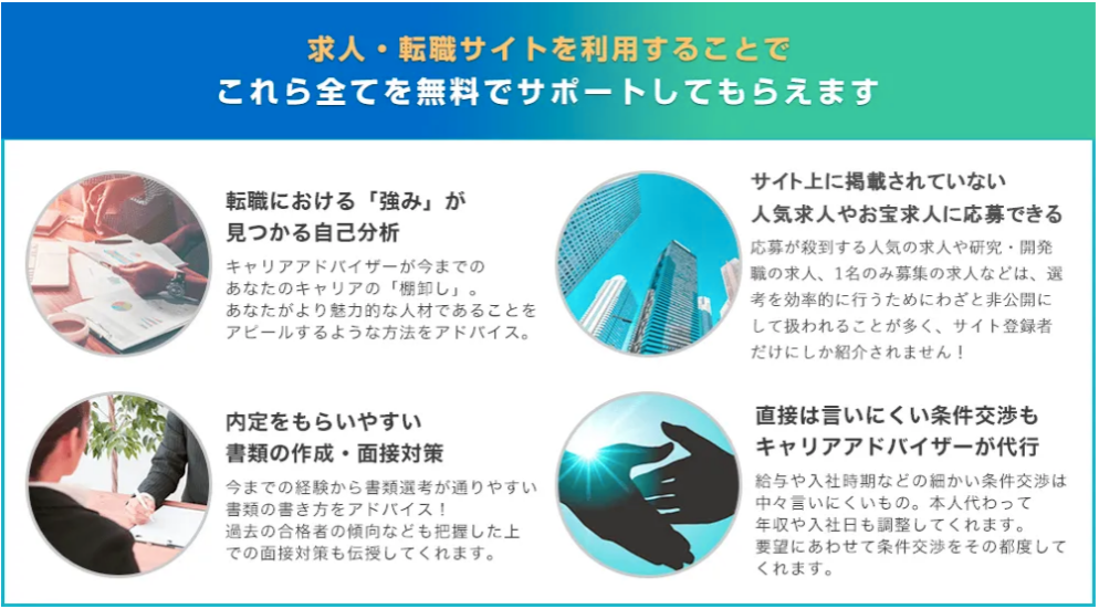 サービス面では、質の高いコンサルタントが求人紹介から面接対策、入社後サポートまで手厚くフォローをしてくれます。